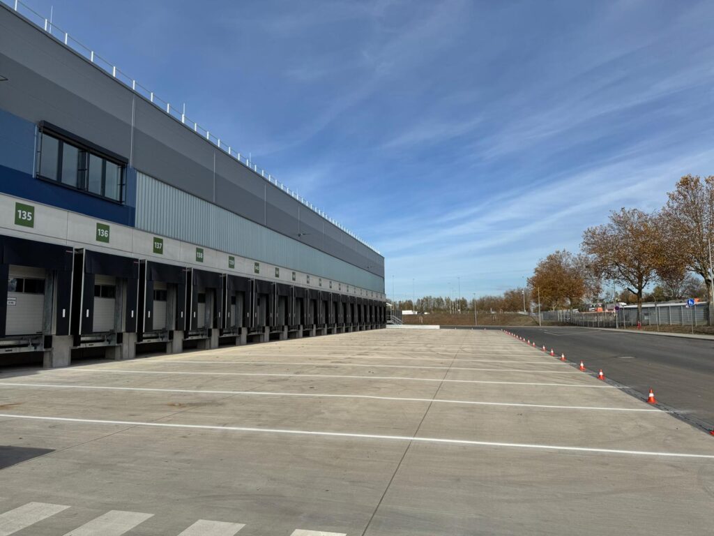 Außen wurden LKW Leitlinien und Fußgängerüberwege markiert. Im Innenbereich wurden Palettenstellplätze, Laufwege und Sperrflächen gekennzeichnet.
